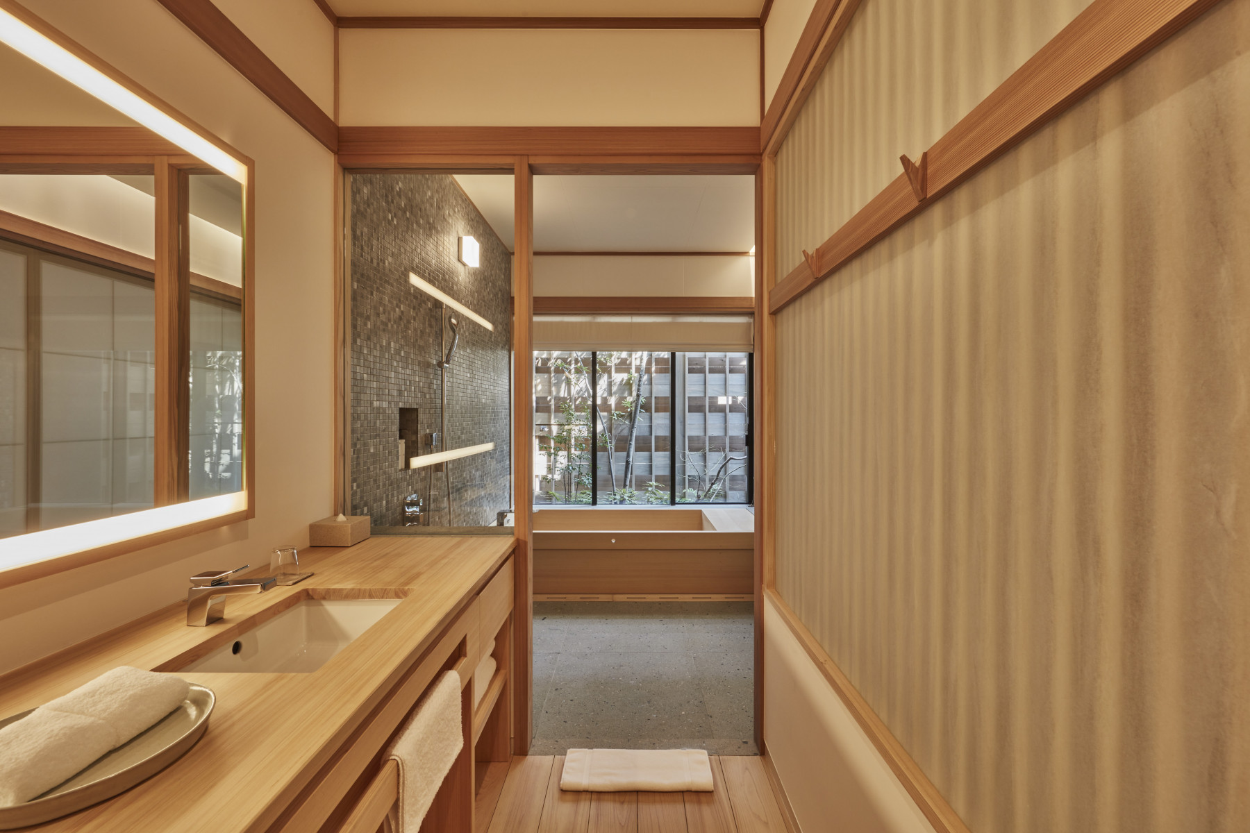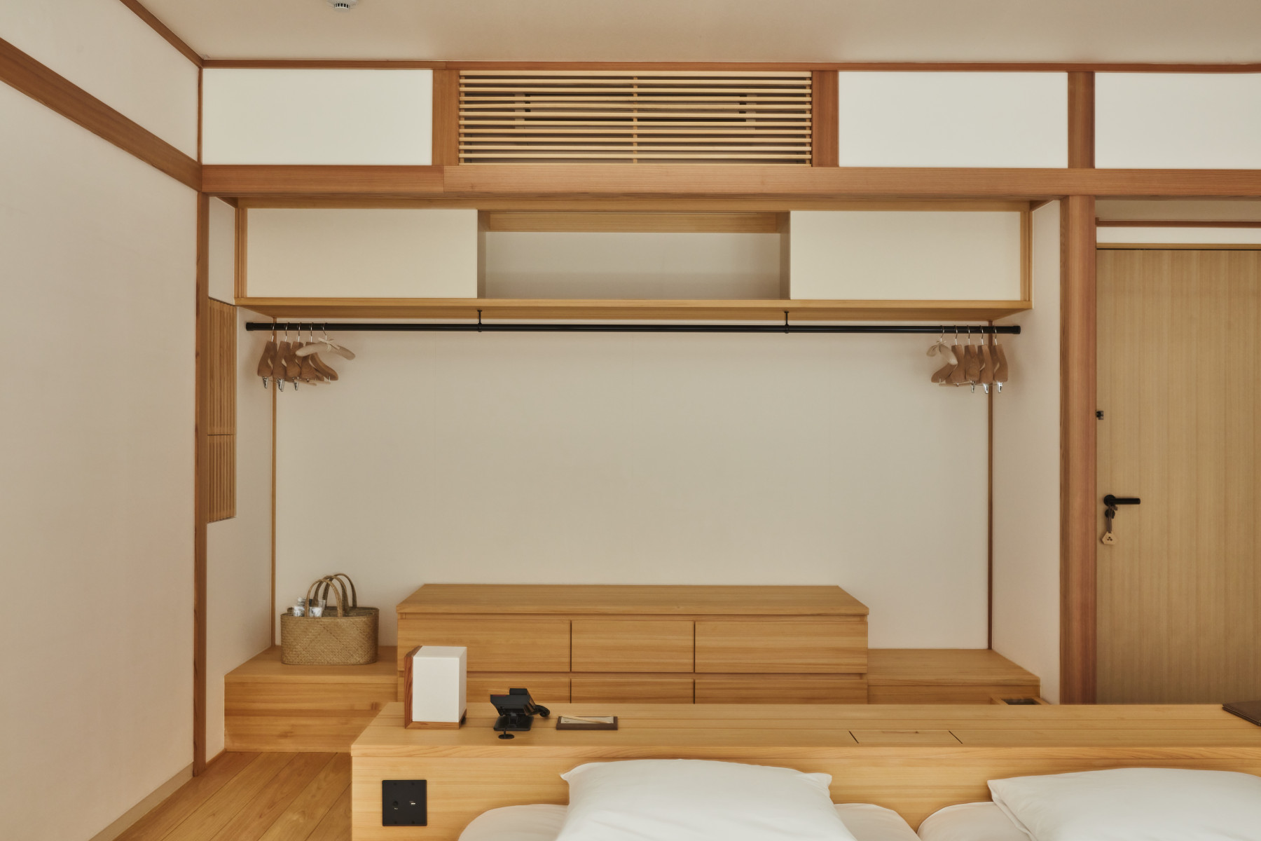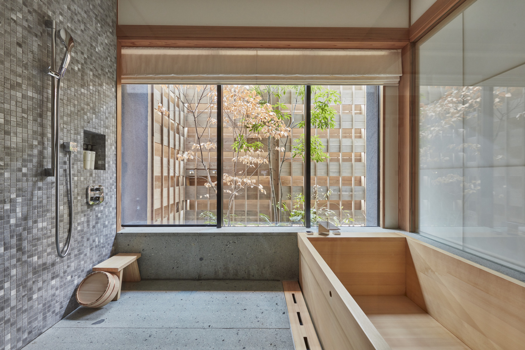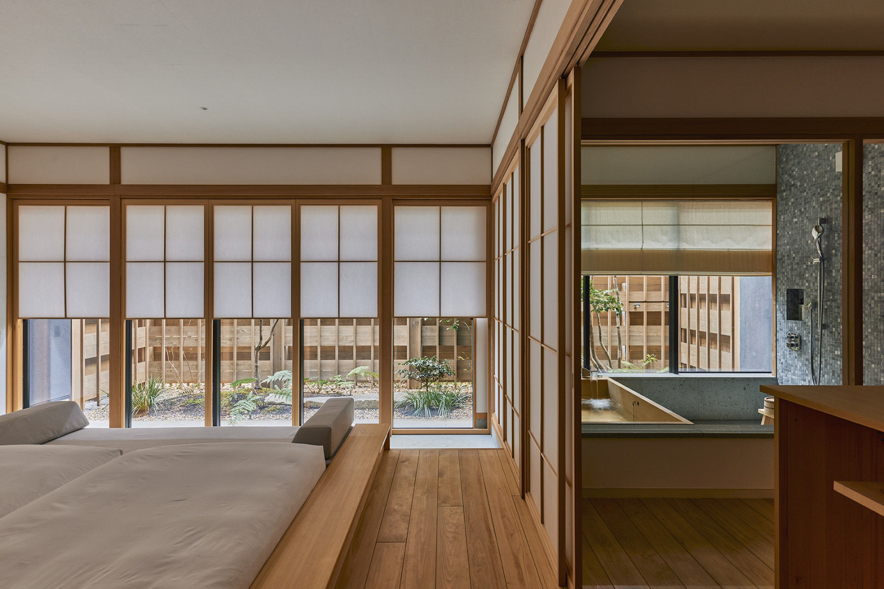 Die eleganten Zimmer von Azumi Setoda befinden sich im zweistöckigen Gäste-Pavillon. Jedes Zimmer ist mit einer Zedern-Badewanne ausgestattet, und Gäste haben die Möglichkeit, das Schwesterhaus, das Yubune-Bad, gleich gegenüber zu besuchen. Die Zimmer bestehen großteils aus Zeder, Zypresse, Washi und Granit.
