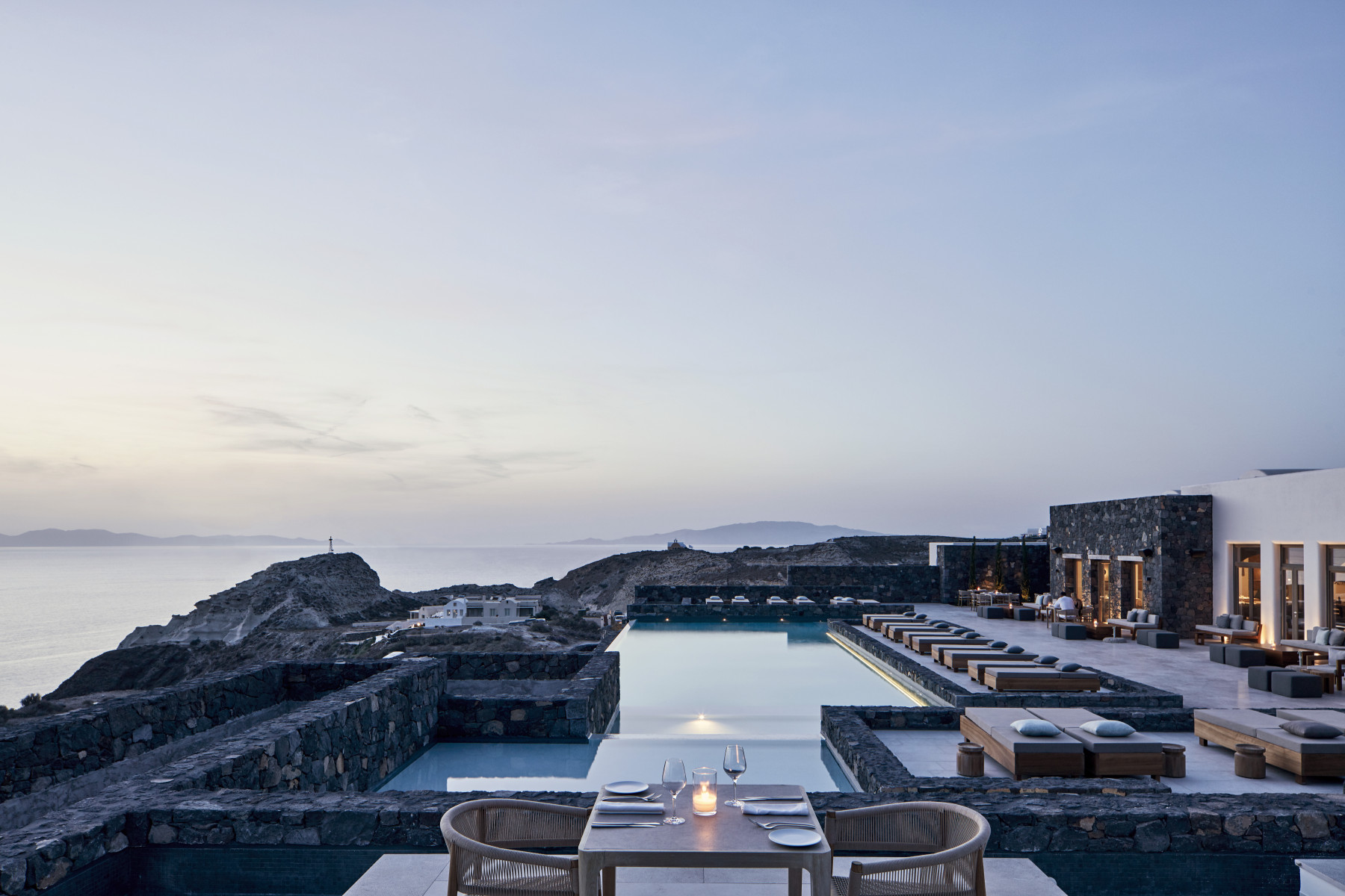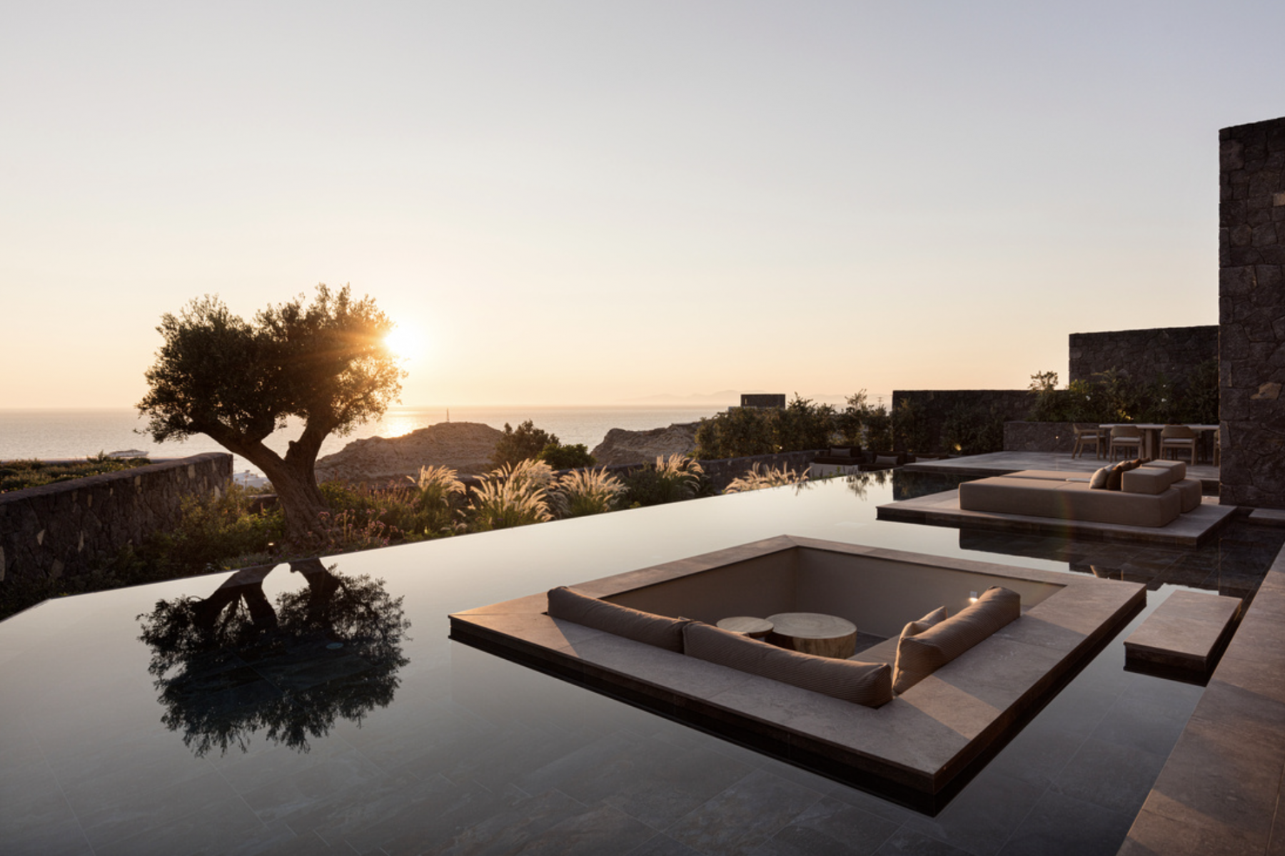 Nur wenige Minuten vom lebhaften Zentrum Oias entfernt und oberhalb der pittoresken Ammoudi-Bucht gelegen, eröffnet das Canaves Epitome Oia einen unvergleichlichen Blick auf die Ägäis und die legendären Sonnenuntergänge Santorinis. Die Architektur aus Vulkangestein fügt sich harmonisch in die Landschaft ein und verbindet moderne Eleganz mit einem Gefühl von Weite und Ruhe – ideal für Paare, Familien und Freundesgruppen, die das Besondere suchen.