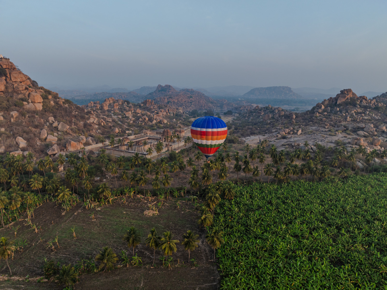 Das Resort liegt 4 km vom UNESCO-Weltkulturerbe Hampi entfernt. Der nächste Flughafen ist Vidyanagar Airport (30 km), mit Direktflügen von Hyderabad und Bangalore.